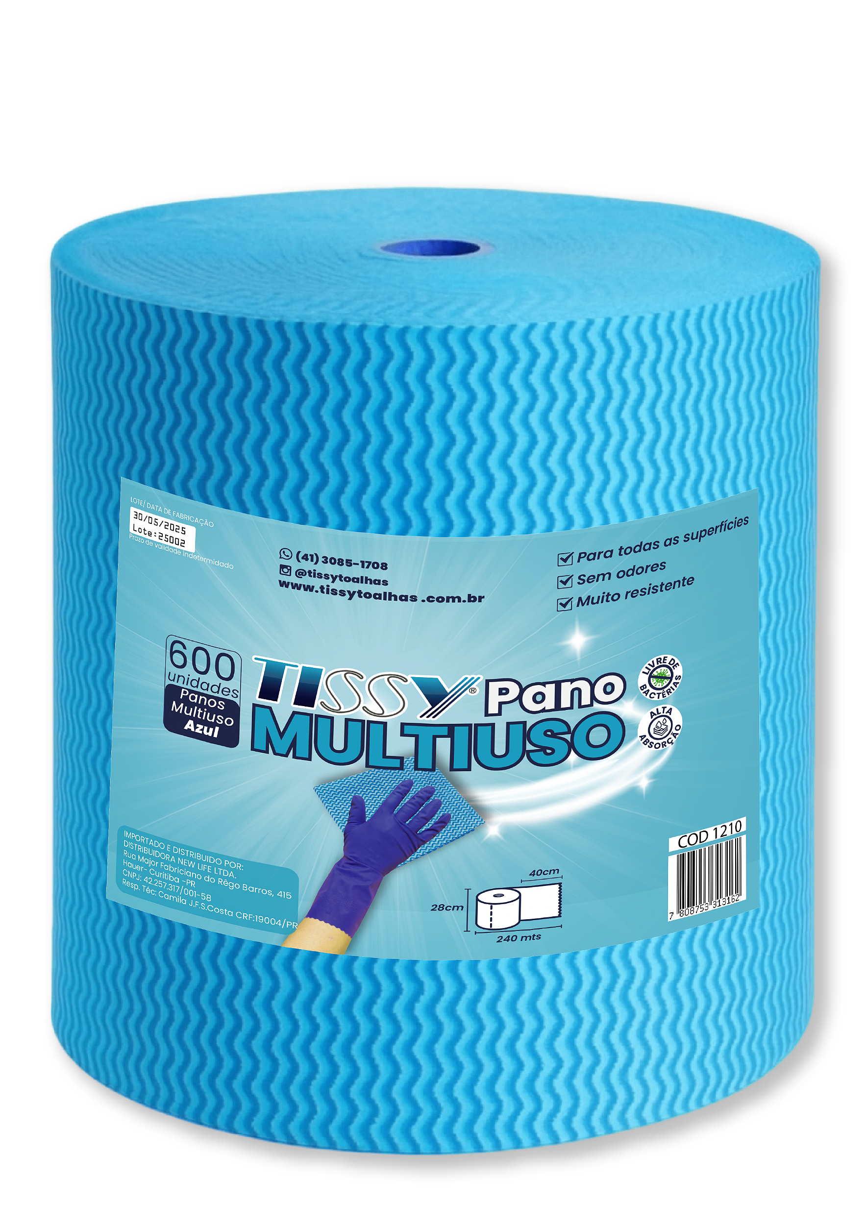 ✅ Economia: O formato de rolo com 300 metros substitui diversos pacotes de panos menores, diminuindo o custo por uso.